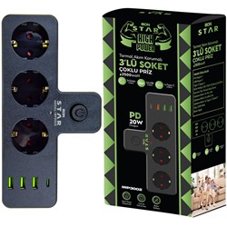 2 METRE KABLO UZUNLUĞU 3xUSB + 1 TYPE-C GİRİŞ AKIM KORUMA 3 LÜ PRİZ POWER AÇMA-KAPAMA TUŞLU 20+ Sepete Ekle