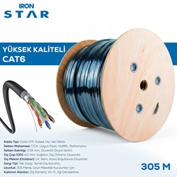 HIGH QUALITY CAT6 UTP CCA 0.55 mm OD 6.5 OUTDOOR (DIŞ MEKAN) DOUBLE JACKET (ÇİFT SARGI) 305 METRE 20+ Sepete Ekle